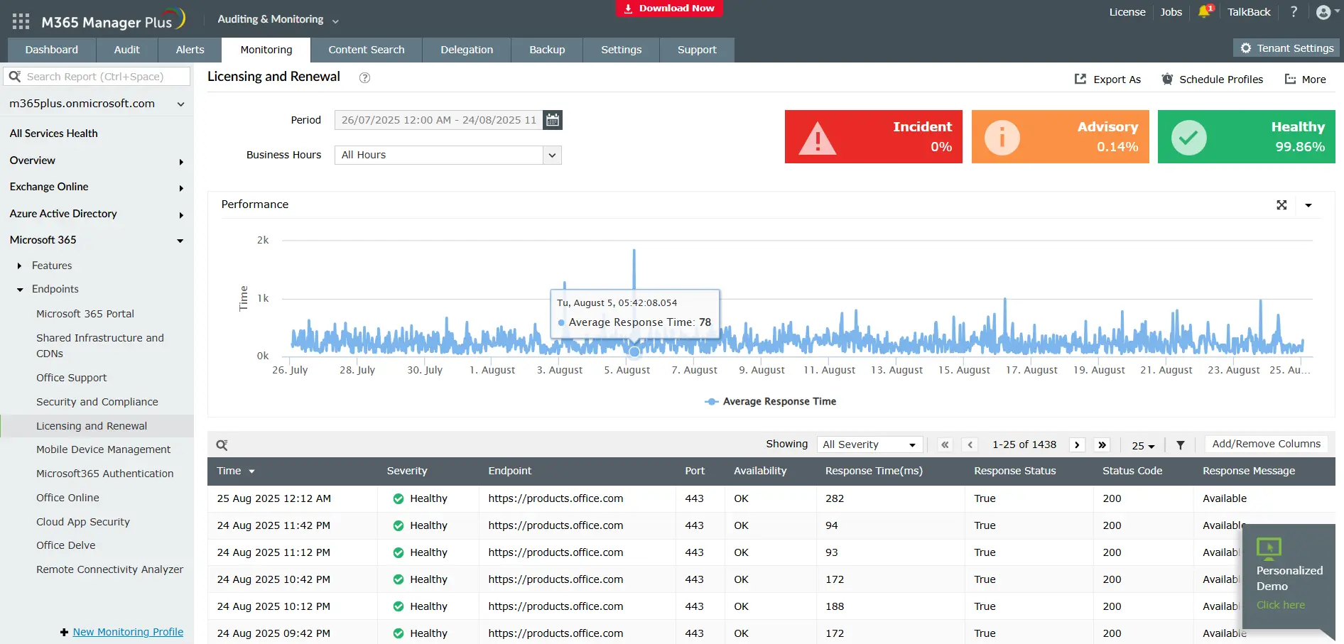 M365 Manager Plus ofrece informes detallados, gestión masiva, monitoreo constante y alertas en tiempo real para mantener su entorno protegido y optimizado.